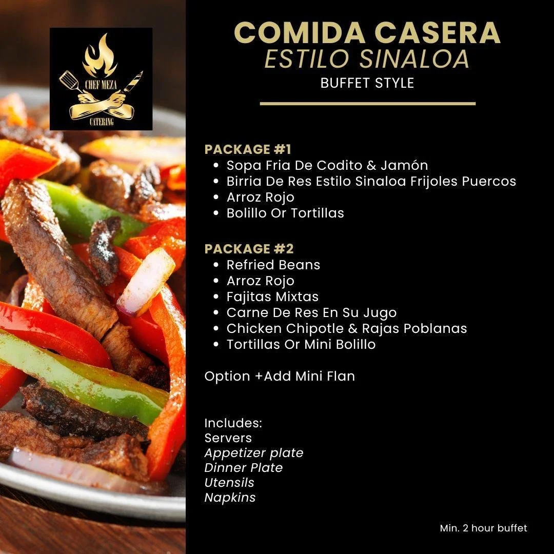 Catering Services TEXT NOW CHEF’S MEZA ITALIAN BUFFET TEXT NOW TEXT NOW TEXT NOW TEXT NOW “Cooking up delicious memories in Orange County since 2000!” — Chef Meza Catering Get ready to plan a feast with us! CALL US